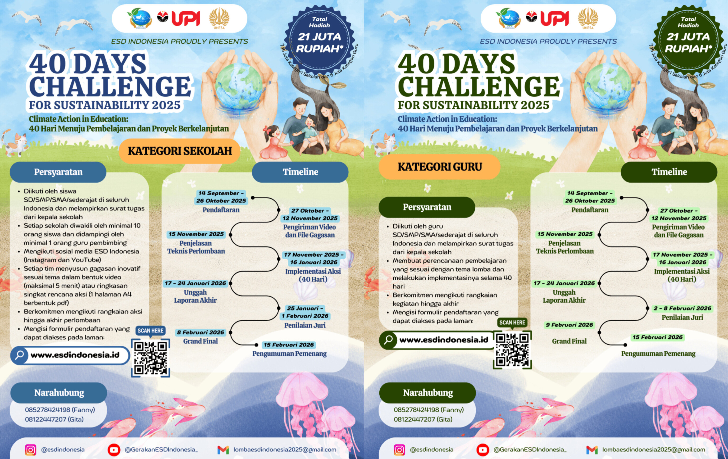 Setelah sukses dalam penyelenggaraan 40 Days Challenge for Sustainability pada tahun 2023, Gerakan ESD Indonesia kembali menggelar kompetisi 40 Days C...