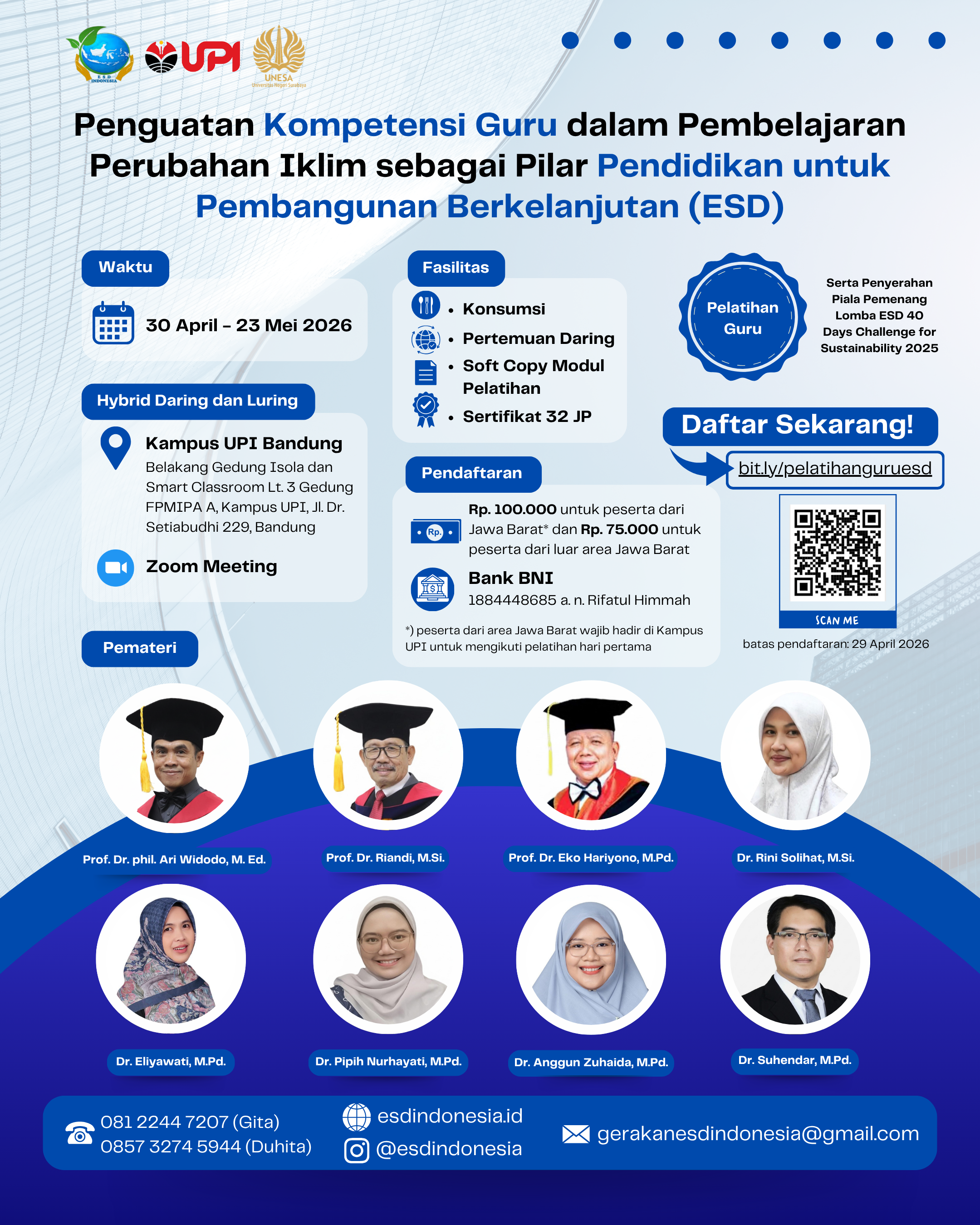 Program Studi Pendidikan Biologi, Pendidikan IPA FPMIPA Universitas Pendidikan Indonesia (UPI), dan anggota dari komunitas Gerakan ESD Indonesia telah...